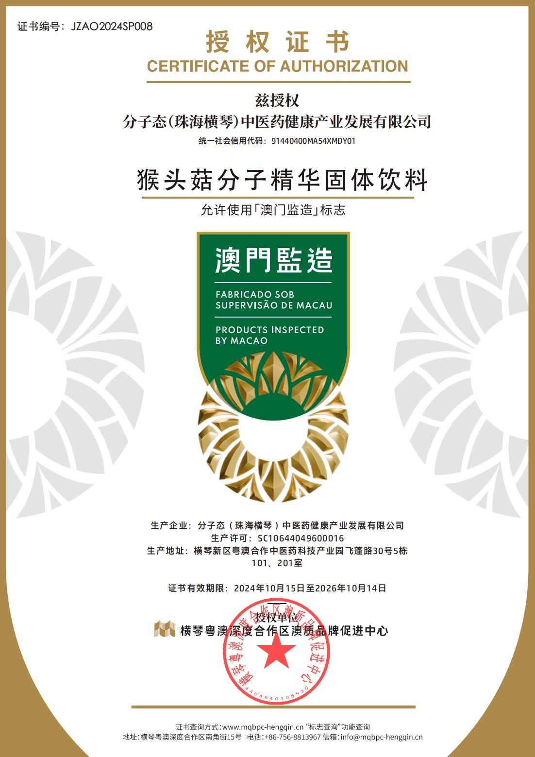 生产企业:分子态(珠海横琴)中医药健康产业发展有限公司