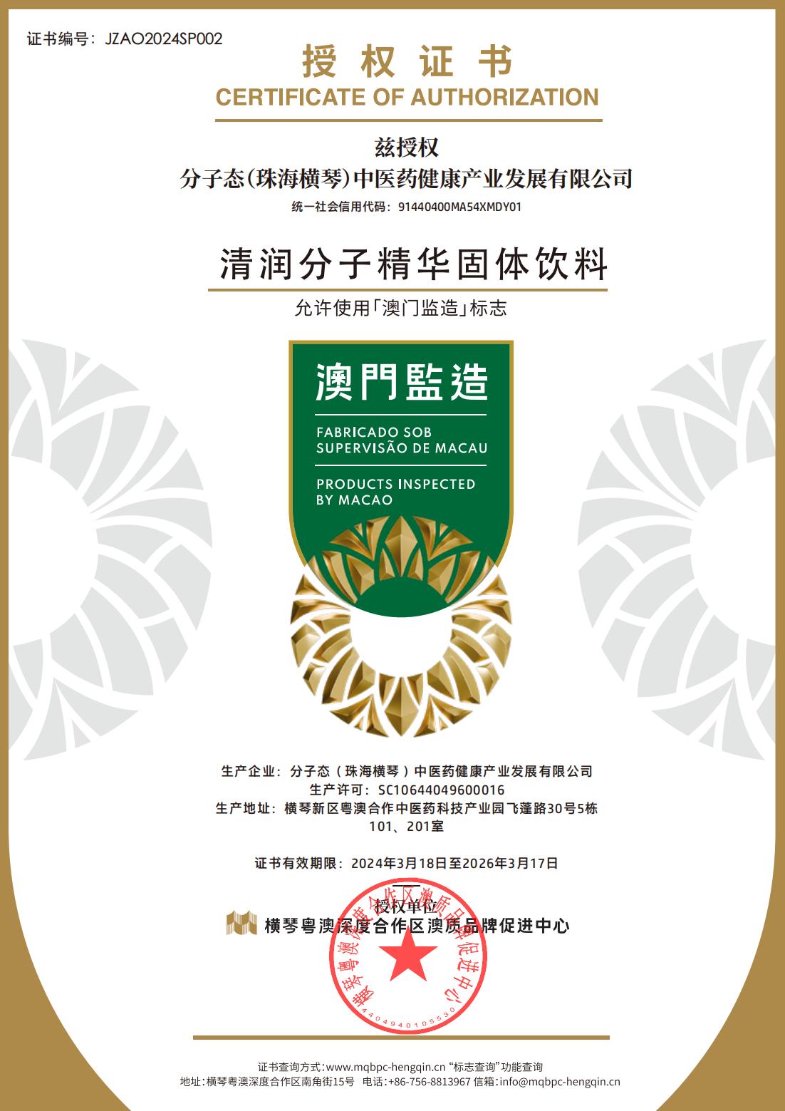 生产企业:分子态(珠海横琴)中医药健康产业发展有限公司